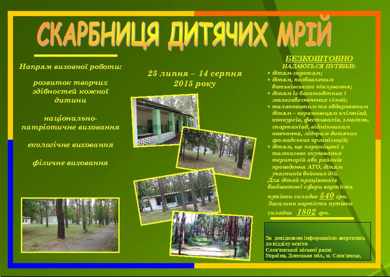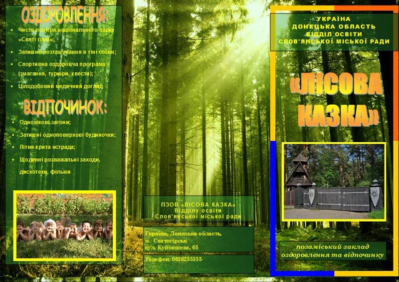 Позаміський заклад оздоровлення та відпочинку «ЛІСОВА КАЗКА» відділу освіти Слов’янської міської ради відкриє свої двері для всіх дітей шкільного віку на одну зміну: з 25 липня по 14 серпня 2015 року.