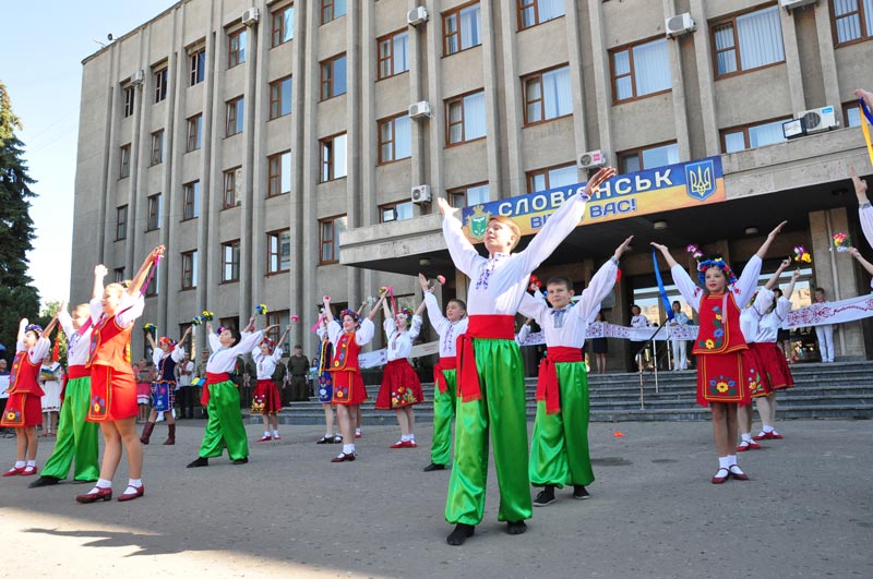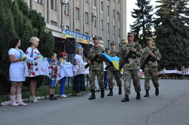 Право підняти Державний Прапор України було надано солдату Збройних сил України Слов’янської роти охорони Миколі Маніку, а право підняти Прапор Європейського Союзу було надано представникам Національної скаутської організації України «Пласт» в м.Слов’янську.