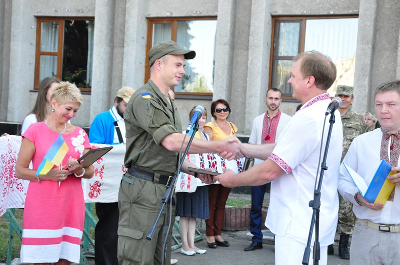 Після цього відбулося нагородження почесними грамотами військовослужбовців та представників громадськості, а також декламування віршів учасницями проекту «Слов’янський поетичний десант». Урочисте святкування завершилося патріотичним флеш-мобом зразкового ансамблю народного танцю «Родичок».