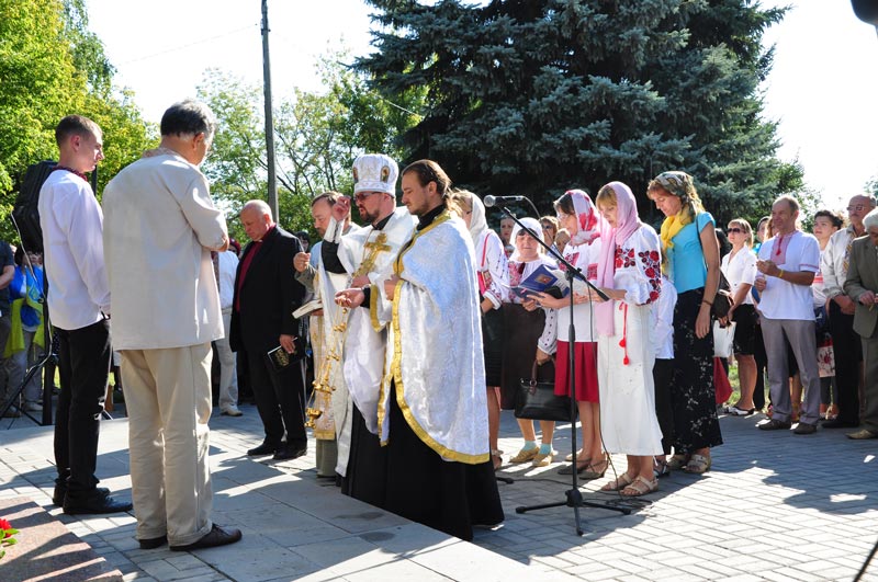На урочистостях були присутні священнослужителі різних конфесій, які провели спільний молебень за Україну.