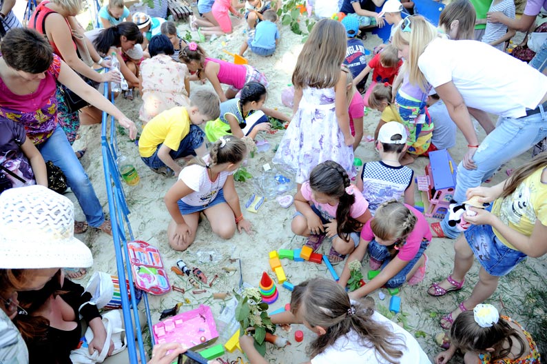 Така громадська акція соціально-психологічного та інформативного спрямування для дітей і дорослих вже другий рік поспіль проводиться на основі відомого методу піскової терапії з метою психологічної підтримки мешканців міста і вимушених переселенців.