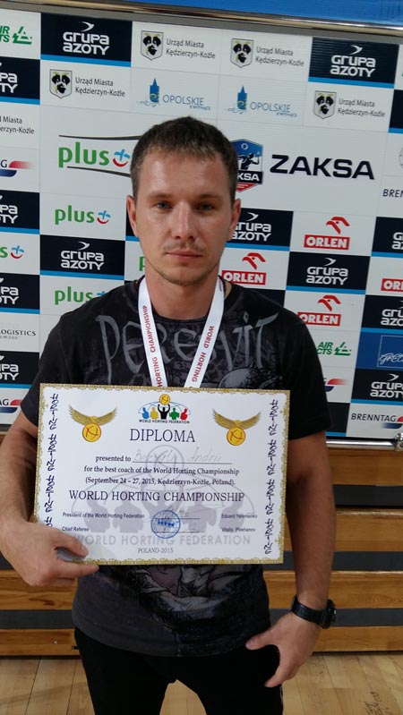 З 24 по 27 вересня 2015 у м.Кендзежин-Козле республіки Польща проходив перший чемпіонат світу з хортингу серед кадетів та кадеток (14-15 років), юніорів та юніорок (16-17 років), чоловіків і жінок (18 років і старше).