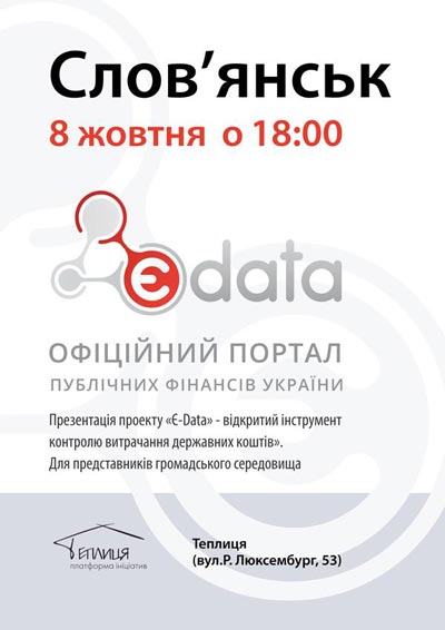 8 жовтня о 18:00 відбудеться презентація проекту Є-Дата в Слов’янську в приміщенні Платформи Ініціатив «Теплиця» (вул. Р.Люксембург, 53).