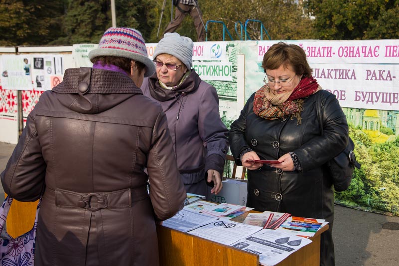 Всі бажаючі могли ознайомитись з агітаційними та інформаційними плакатами, пам’ятками, буклетами, з питань профілактики раку молочної залози та пропаганди здорового способу життя.