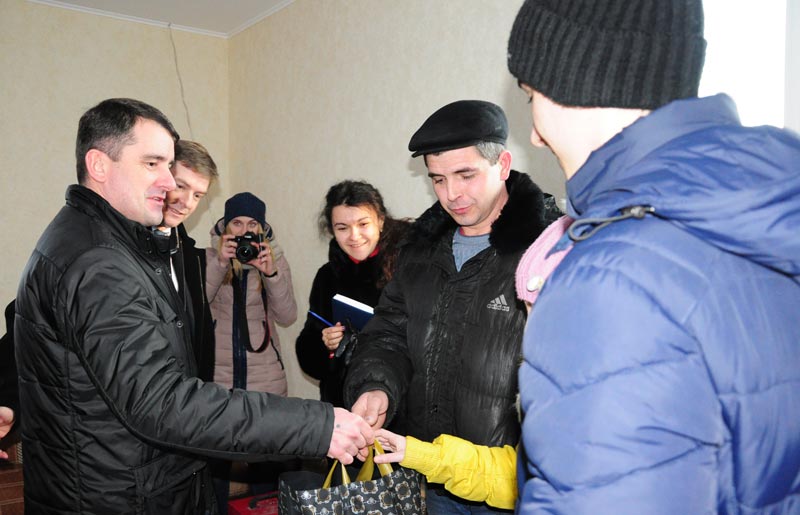 Міський голова Вадим Лях привітав родини, яким пощастило отримати ключі від нових будинків та презентував подарунки на новосілля.