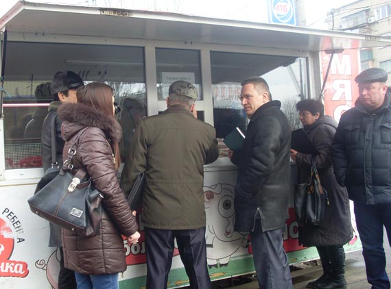 Були перевірені 10 об'єктів з хлібною, молочною, м'ясною, овочевою, табачною продукцією. Виявлено безліч правопорушень починаючи від прострочених документів минулих років і закінчуючи непрацевлаштованими реалізаторами. Продавці, як і минулого разу побачивши комісію вдаються до втечі, тим самим підводячи своїх роботодавців.
