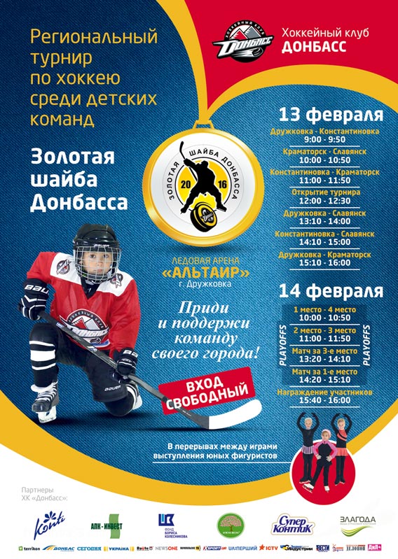 Это будет уже второй турнир "Золотая шайба" в Дружковке. Год назад (7-8 февраля) в турнире среди старших команд (9-11 лет) победу отпраздновали представители Краматорска, а среди младших – главный трофей достался команде из Константиновки.