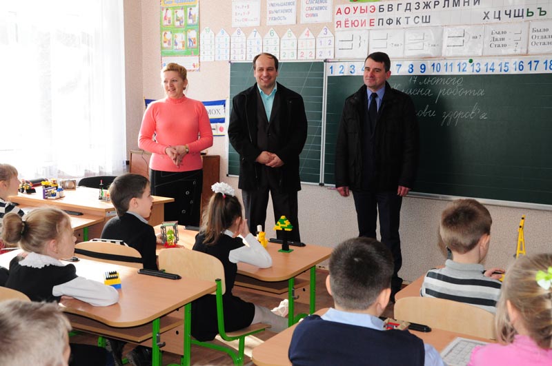 Після урочистих промов директор школи запросив міського голову Вадима Ляха та усіх гостей оглянути відремонтовані класи та приміщення. У супроводі директора школи міський голова Вадим Лях завітав на урок до молодших класів.