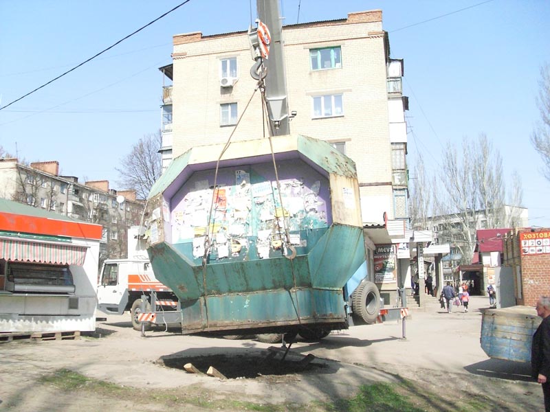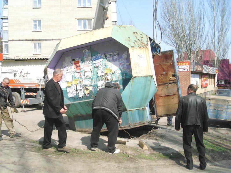 За ініціативою міського голови Вадима Ляха 7 квітня на м-ні Артема по вул. Вольній відбувся демонтаж незаконно розташованого об'єкту малої архітектурної форми (біля магазину “Коробейник”). Варто зазначити, що власник не з'явився, незважаючи на те, що йому були направлені попереджувальні листи з проханням отримати всі необхідні дозвільні документи для розміщення та здійснення підприємницької діяльності.