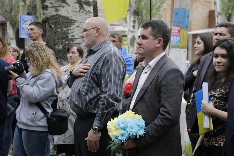 До усіх присутніх з промовою звернувся міський голова Вадим Лях. Він закликав вшанувати пам'ять не тільки Володимира Рибака, але й усіх героїв, які тоді в квітні 2014 року одними з перших віддали життя за цілісність України. Він підкреслив, що нехай пам'ять про всіх невинно вбитих згуртує нас, дасть нам силу та мудрість берегти мир на нашій землі. Тимчасово виконуючий обов'язки заступника голови Донецької обласної державної адміністрації Ігор Стокоз також висловився щодо героїчного вчинку Володимира Рибака.