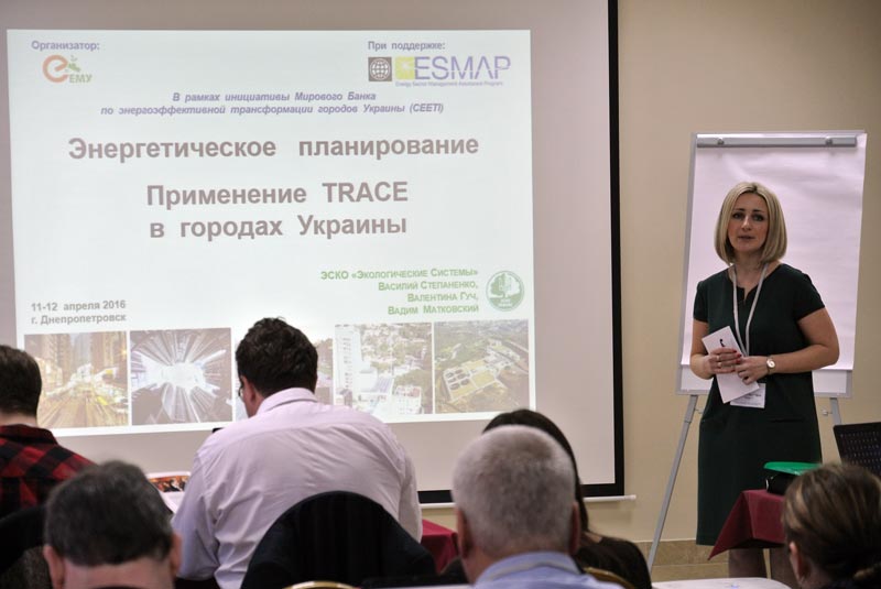 В рамках співпраці між Світовим Банком, Асоціацією «Енергоефективні міста України» та ЕСКО «Екологічні Системи» у Дніпропетровську для визначених міст-членів Асоціації та підписантів Угоди Мерів в Україні відбулись практичні тренінги з питань оцінки можливостей міст в підвищенні енергоефективності за допомогою інструменту TRACE, розробленого в рамках програми ESMAP Світового банку.