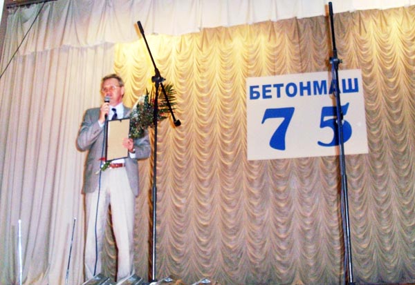 Першим усіх робітників підприємства та гостей з ювійлейною датою 75 річчя привітав голова правління ПАТ “Бетонмаш” Флерко Максим Миколайович. Він зазначив, що за цей період більш ніж у 50 країн світу поставлялася продукція заводу та подякував усім, хто вносив свій вклад в історію заводу, а особливо в його визнання та славу.