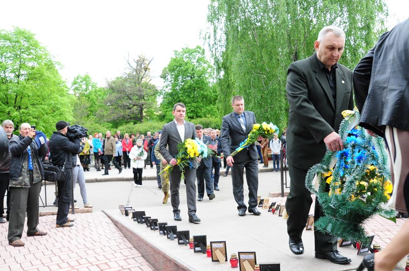 Першим з промовою виступив міський голова Вадим Лях. Він зазначив, що ми завжди повинні пам'ятати цю страшну подію, яка забрала десятки тисяч життів наших співвітчизників та бути вдячними тим, хто нас врятував. Очільник міста побажав щастя, здоров'я всім ліквідаторам, які зараз поряд з нами.