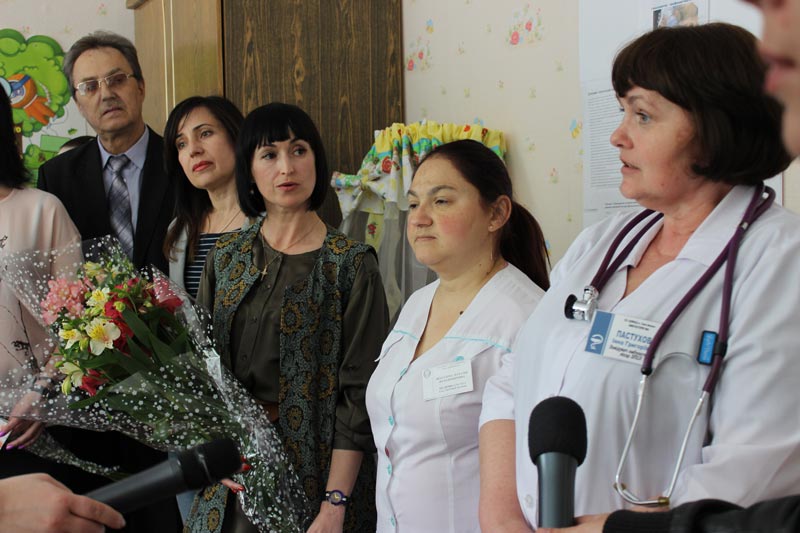4 травня в амбулаторії № 4 КЗ «Центр первинної медико-санітарної допомоги м.Слов’янська» апаратуру, демонстраційні матеріали і друковану продукцію для роботи центру передали медпрацівникам керівник ГО «ПРОМИР» Тетяна Асланян, керівник проекту Марина Рогова та психологи центру.