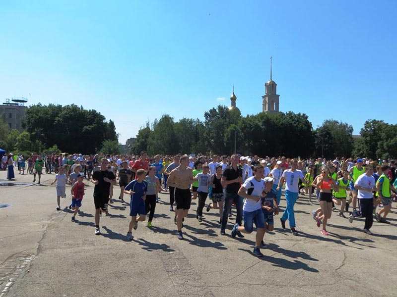 Після того, як м’язи були розігріті, усі бажаючі вийшли на старт масового забігу. Його очолили кращі вихованці Донецького вищого училища олімпійського резерву імені Сергія Бубки, які вийшли на лінію старту з факелом та прапором Національного олімпійського комітету України.