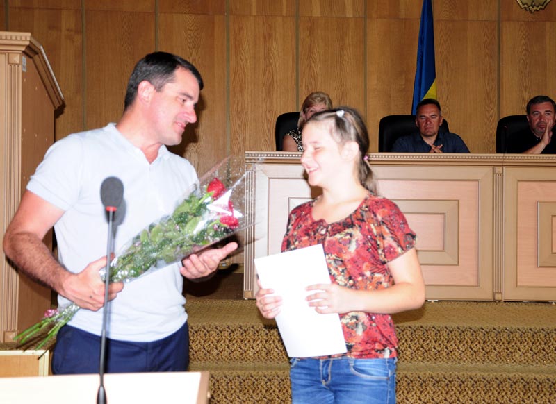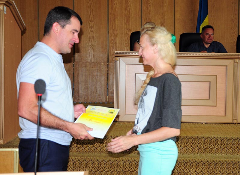 Міський голова вручив Подяку учасниці зразкового театру пісні “Феєрверк” Анастасії Лоскутовій за активну участь в організації та проведенні культурно-мистецької акції “Донеччина UA перезавантаження». Також Подяку з рук міського голови отримав танцювально-спортивний клуб “Фо степ” та його керівник Тетяна Хіміон. Варто нагадати, що саме вона у Києві організувала флешмоб за участю людей з обмеженими можливостями.