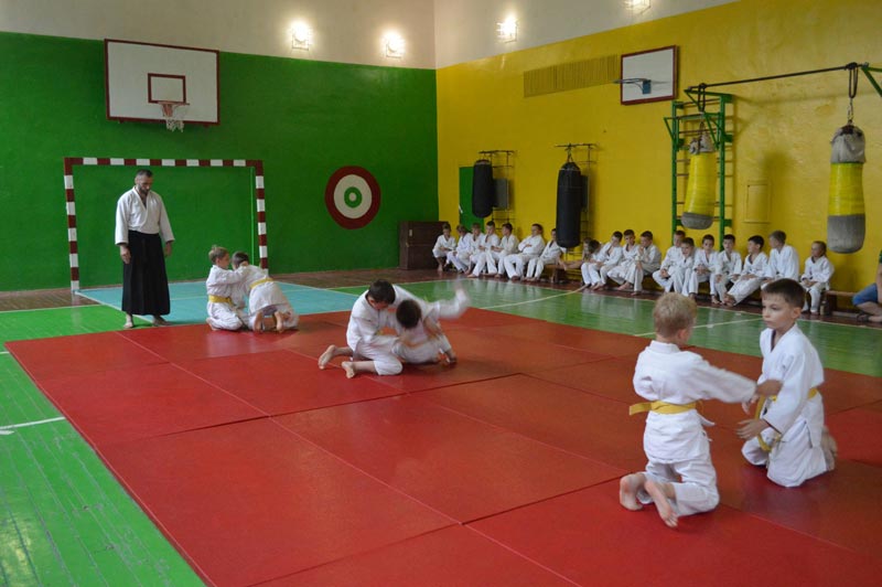 Іспит проходив у два етапи: на вулиці юні спортсмени виконували різноманітні фізичні вправи і брали участь в спортивних естафетах, а у спортивному залі проходила демонстрація технічного арсеналу айкідо (страхувальні падіння, переміщення в бойовій стійці, виконання прийомів самозахисту).
