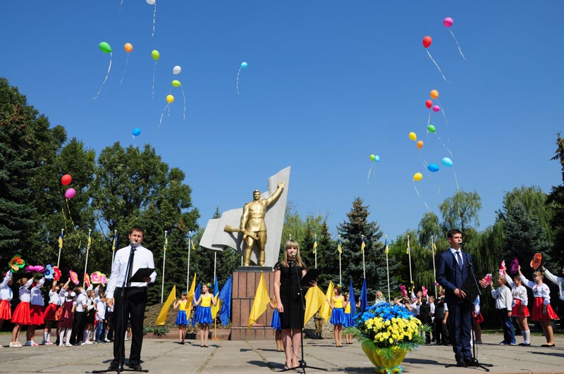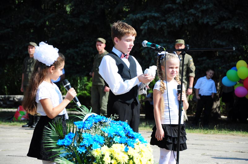 Наприкінці заходу школярі виконали вірші та випустили білих голубів, які символізують мир, у небо. Усі присутні поклали квіти до Монументу Слави.