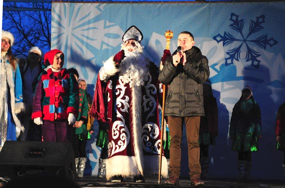 Міський голова Вадим Лях привітав всіх присутніх зі Святим Миколаєм та запалив новорічну ялинку.