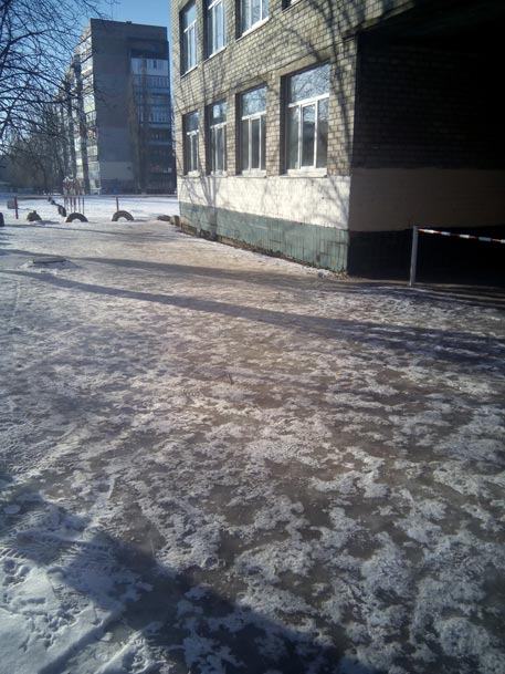 несвоєчасне очищення від льоду і снігу сходів, тротуарів, прилеглої території до об'єктів торговельного, побутового призначення та посипання фракційним матеріалом ;