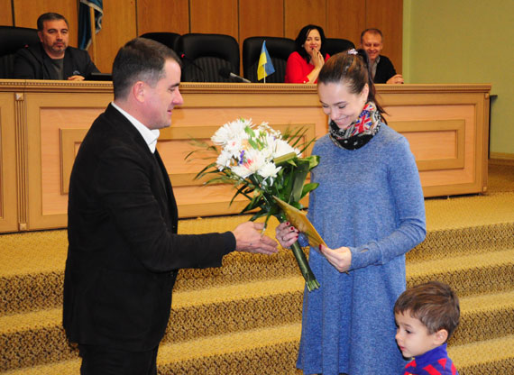 Сьогодні 21 листопада міський голова Вадим Лях на апаратній нараді привітав слов`янців і вручив квіти та подарунки цій родині.