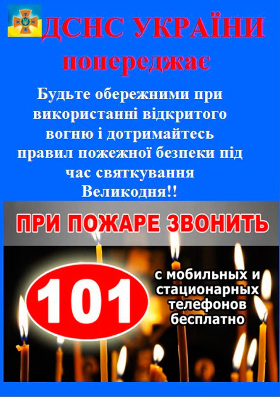 Напередодні свята Великодня співробітники 6-го державного пожежно-рятувальна загону ГУ ДСНС України у Донецькій області провели інструктажі з питань пожежної безпеки з керівниками та прихожанами храмів. Рятувальники інформують, які правила повинні дотримуватись під час богослужінь у храмах, щоб застерегти виникнення нештатних ситуацій, а саме: