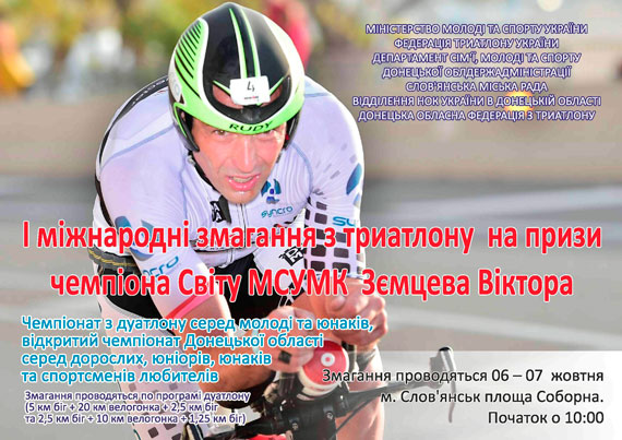 Слов’янська міська рада повідомляє, що 6-7 ЖОВТНЯ у зв’язку з проведенням I міжнародних змагань з триатлону на призи чемпіона світу, Майстра спорту України міжнародного класу Віктора Земцева та відкритого чемпіонату Донецької області з дуатлону серед дорослих, молоді, юніорів, юнаків, кадетів та спортсменів любителів в місті Слов’янську ТИМЧАСОВО БУДЕ ОБМЕЖЕНО РУХ з 09:00 до 14:00 по вулицям: