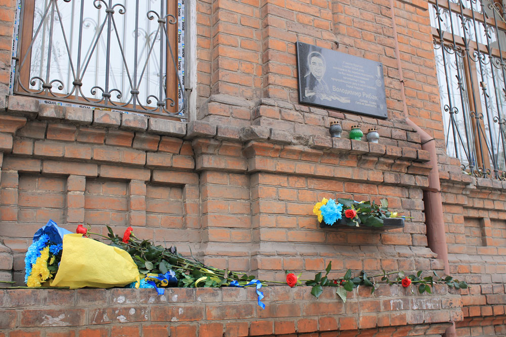 Після цього учасники заходу вшанували Героїв хвилиною мовчання та поклали квіти до меморіальної дошки Володимиру Рибаку.
