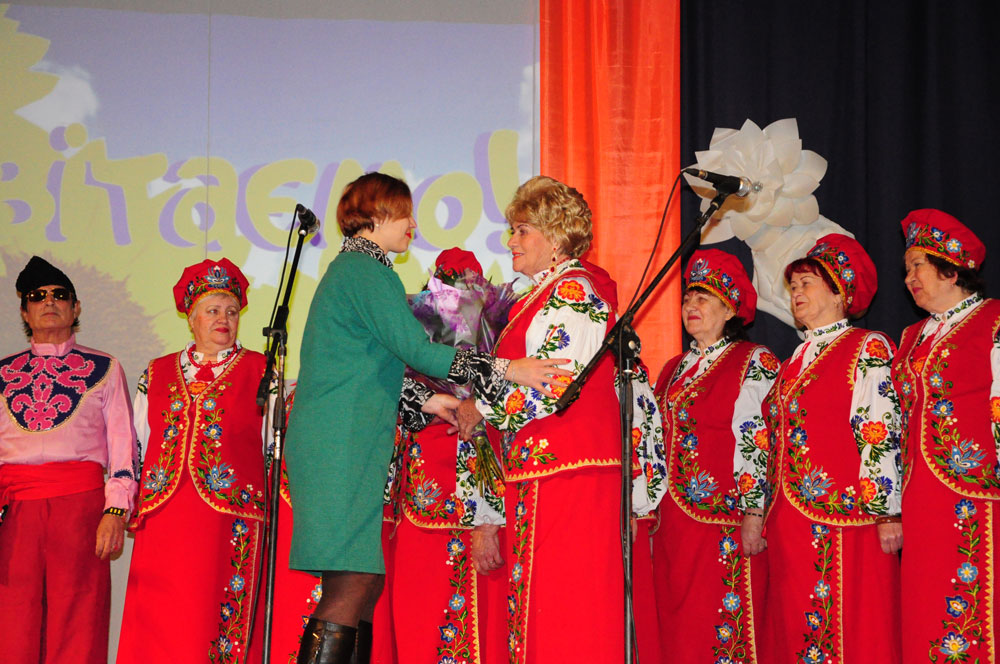 Начальник відділу культури Марина Олійник також вручила букет квітів ювілярам.