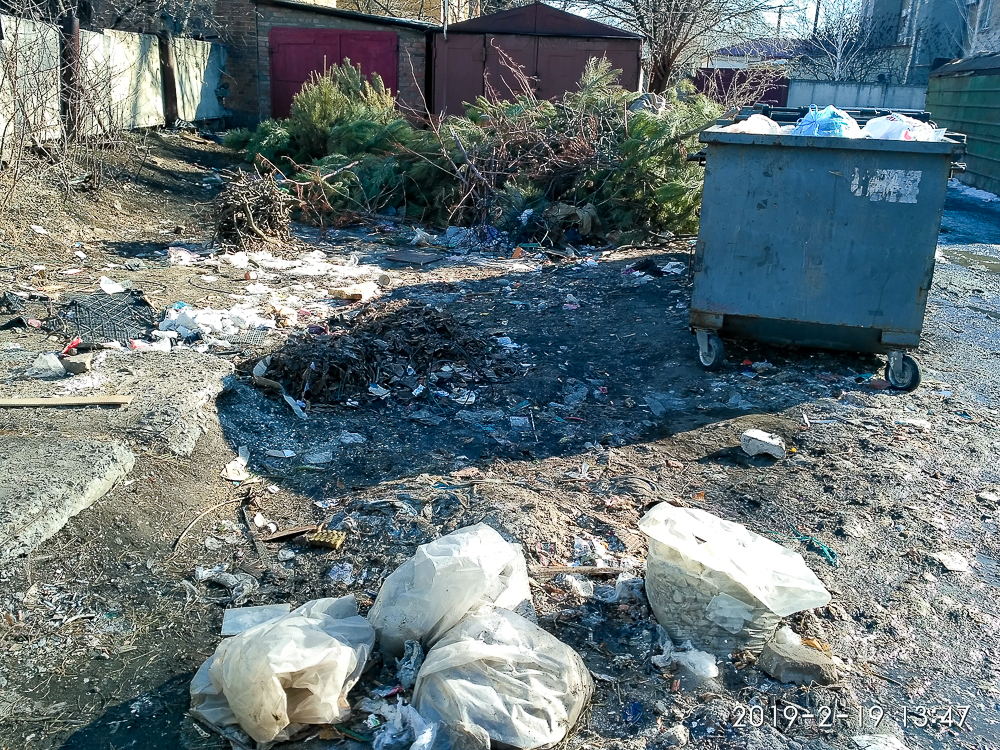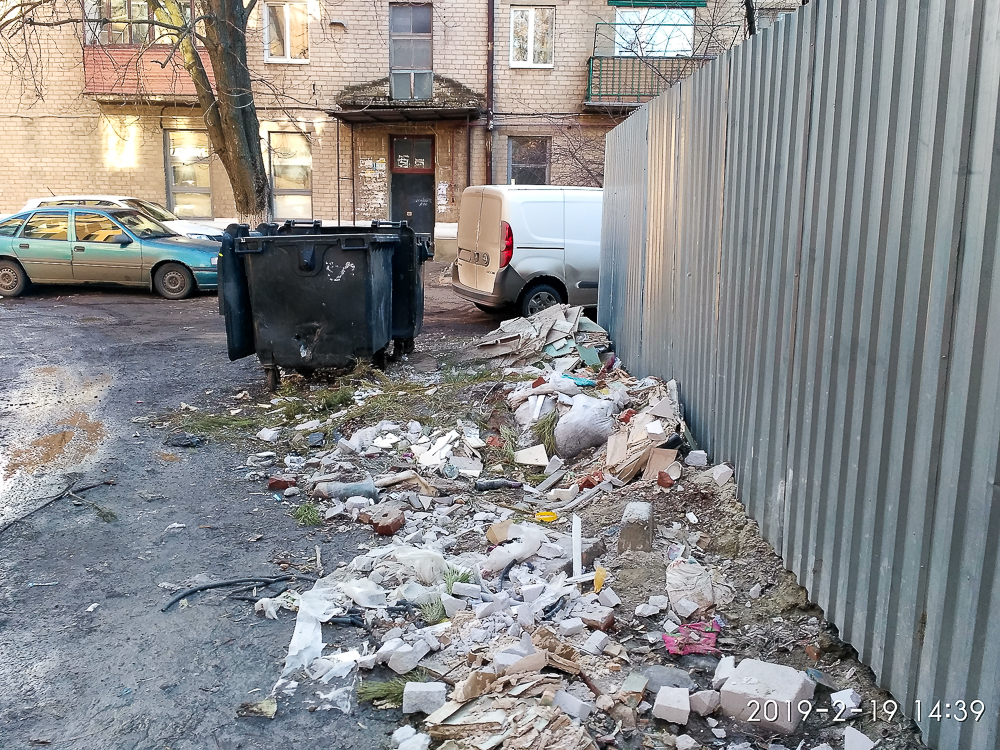 неналежне утримання прилеглої території житлових будинків, об'єктів торгівлі та сфери послуг (територія засмічена побутовим та будівельним сміттям);