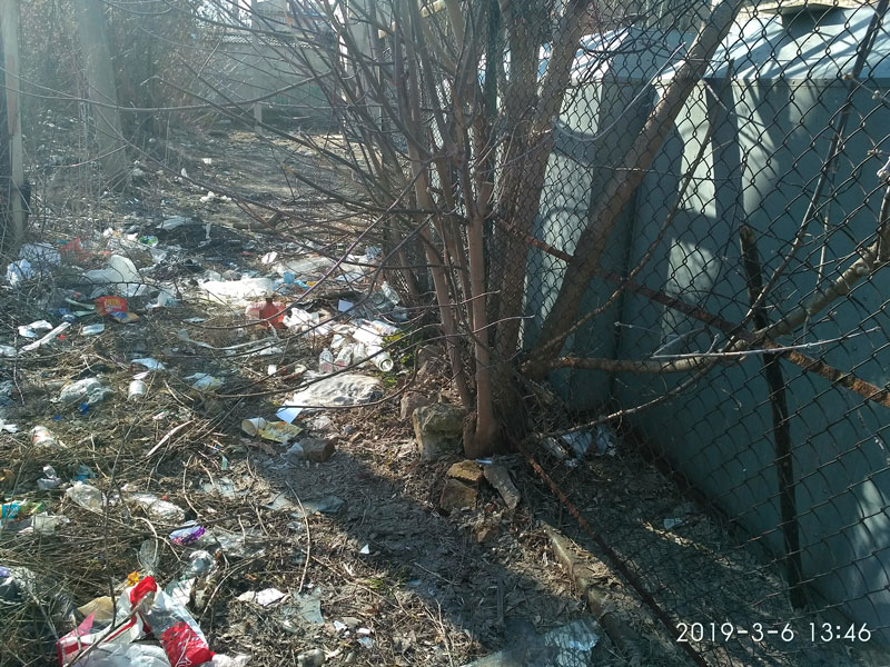 неналежне утримання прилеглої території житлових будинків, об'єктів торгівлі та сфери послуг (територія засмічена побутовим та будівельним сміттям);