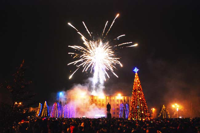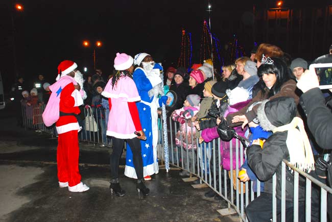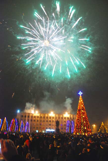 Уже через полчаса после наступления 2013-го года на площади горожан поздравляли Дед Мороз и Снегурочка. Под зажигательные песни популярной группы «Alfa-Alfa» из репертуара «Boney M» невозможно было устоять на месте. Яркое огненное шоу от «No frost» великолепно вписывалось в волшебную атмосферу новогодней ночи. Необыкновенно красивым был и праздничный фейерверк. Всех желающих угощали горячим чаем и вкусной выпечкой от городского головы Нели Штепы.