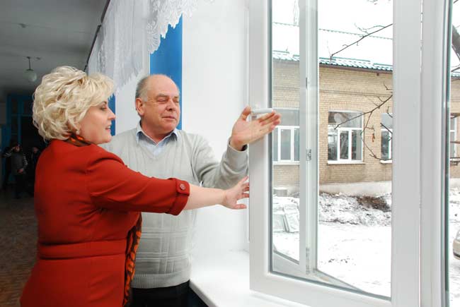 Следующим пунктом рабочей поездки стала ООШ № 8. В этой школе были также заменены полностью все окна. Встретила она гостей веселым детским гамом - как раз было время перемены. И гости прошли по классам, не нарушая учебный процесс.