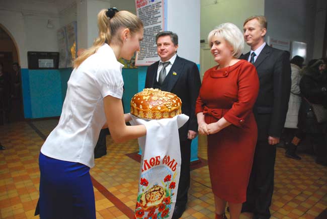 Нелю Штепу и Алексея Азарова родители, учителя, ученики встречали хлебом-солью и благодарили за добрые перемены: