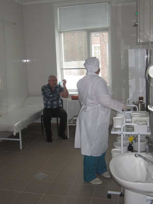 Сегодня в светлом, великолепно отремонтированном помещении на первом этаже двухэтажного здания размещены физиотерапевтический, манипуляционный, прививочный, смотровой, ЭКГ-кабинеты, кабинет стоматолога. Здесь же работает клинико-диагностическая лаборатория и пункт временного базирования скорой медицинской помощи бригады славянской станции скорой помощи.
