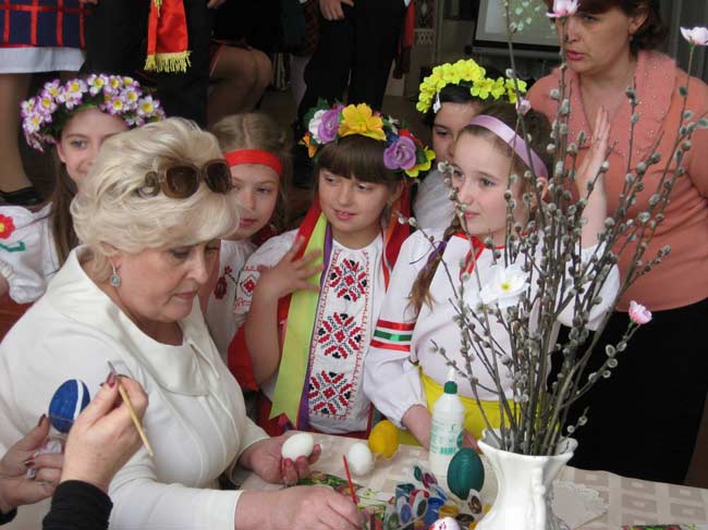 Тут же состоялся мастер-класс по изготовлению писанок, в котором приняла участие и почетная гостья праздника городской голова Славянска Неля Штепа.
