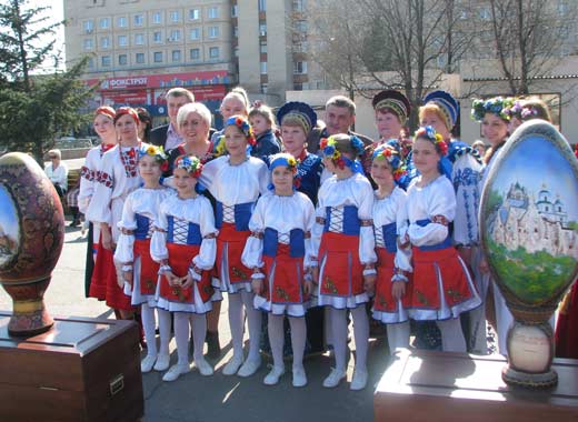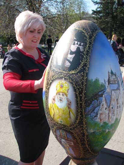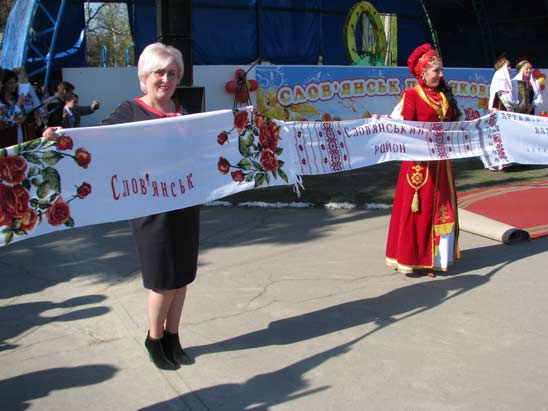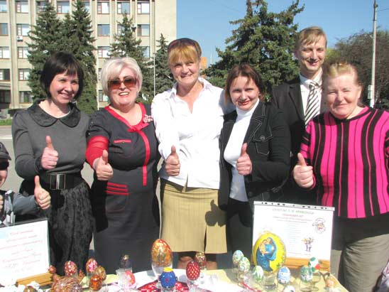 Многочисленные писанки необыкновенной красоты, созданные школьниками, студентами, преподавателями, мастерами декоративно-прикладного искусства, были представлены на центральной площади на обозрение всем славянцам. Авторы работ знают, что в ближайшие дни их шедевры уедут в Киев. Более 700 писанок, выполненных в различных техниках, представит Славянск на фестивале «Писанковий рай 2013».