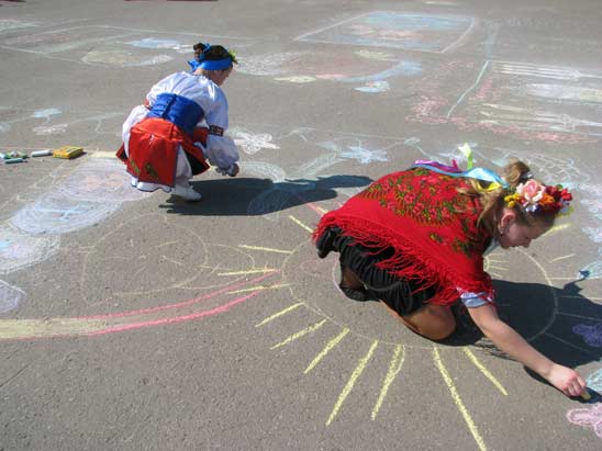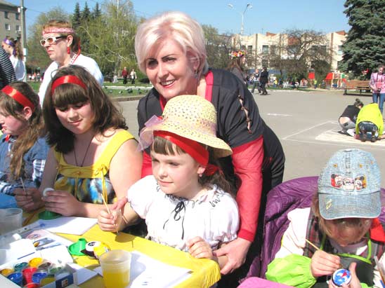 Праздник получился ярким и колоритным. Можно было не только любоваться готовыми изделиями, рисовать на асфальте, но и самому изготовить писанку под руководством опытных мастериц: прямо на площади был организован мастер-класс.