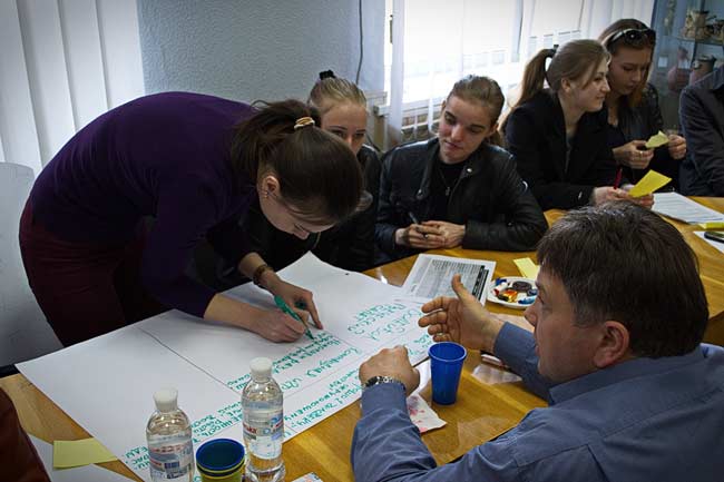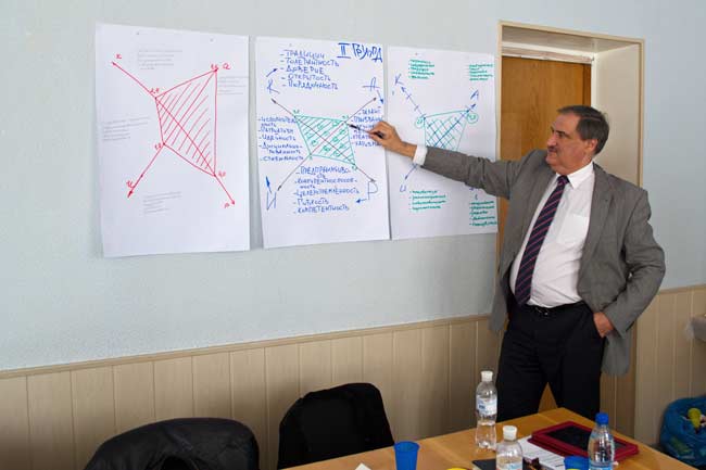 В начале первого дня координатор проекта Алла Матвиенко презентовала бренд-меморандум Славянска, подготовленный по результатам первого семинара. Далее «неравнодушные брендостроители» выясняли, какими должны быть городские ценности, кто в городе больше всего заинтересован в развитии бренда, какие группы влияния возьмут на себя ответственность за формирование нового образа города.