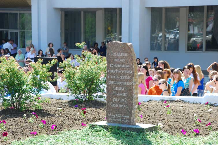 23 мая в Славянске в рамках празднования 1025–летия крещения Киевской Руси торжественно заложен камень в основание будущего памятника в честь святых равноапостольных братьев Кирилла и Мефодия. Символично, что памятник будет сооружен рядом с университетом и православным храмом, который сейчас возводится.