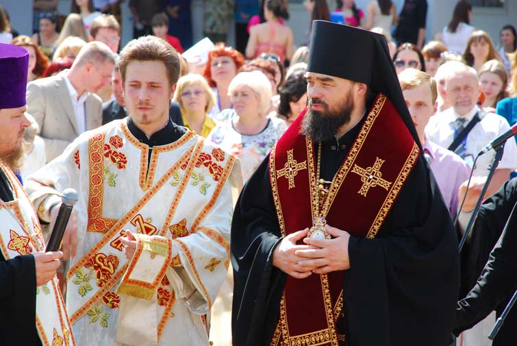 Преосвященный Митрофан, который, кстати, является членом наблюдательного совета Донбасского государственного педагогического университета, в своем выступлении отметил, что с благодарностью принял участие в молитве, которая совершилась перед основанием памятника. Напомнил, что 24 мая отмечается День святых Кирилла и Мефодия, которые подарили нам огромное богатство – встречу со словом Божьим, которая позволяет открыть красоту духовной жизни. И каждому из нас дана прекрасная возможность обогатить этот опыт своими добрыми делами.