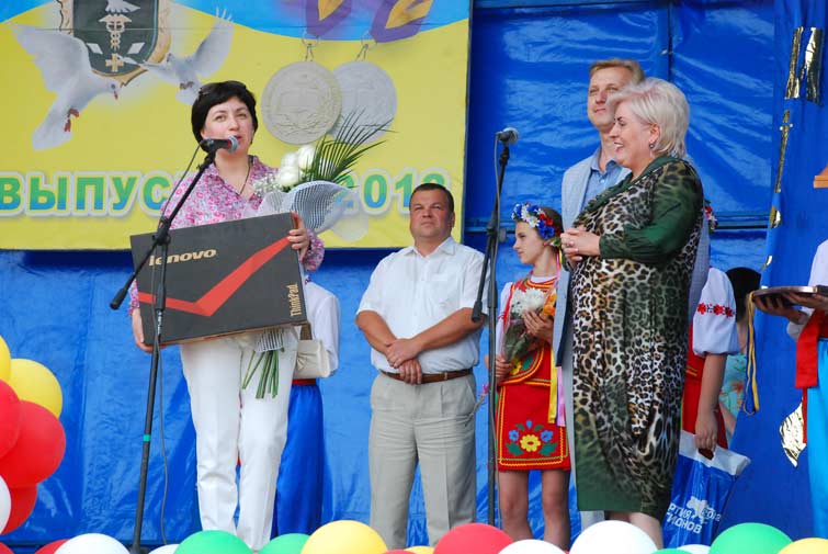 Неля Штепа, поздравляя медалистов, пригласила их возвращаться в Славянск после окончания вузов и заверила, что в родном городе для них обязательно будет работа. И вручила ноутбуки директорам школ, которые воспитали наибольшее количество медалистов - Славянской школе № 5, педагогическому лицею и Николаевской школе № 1.