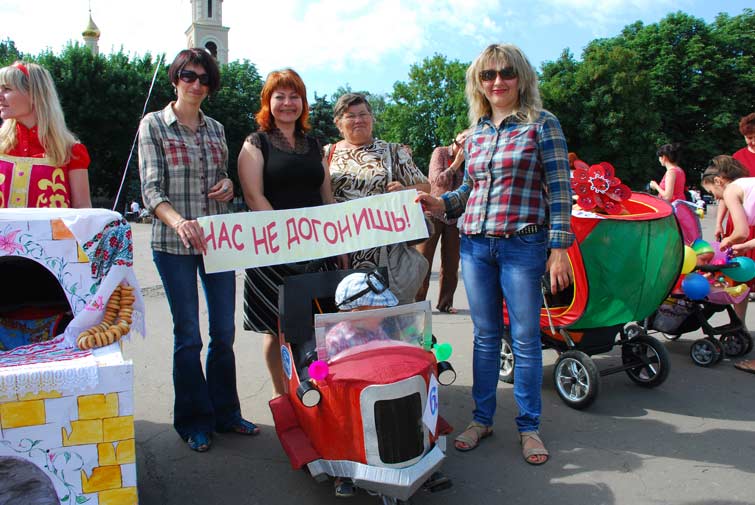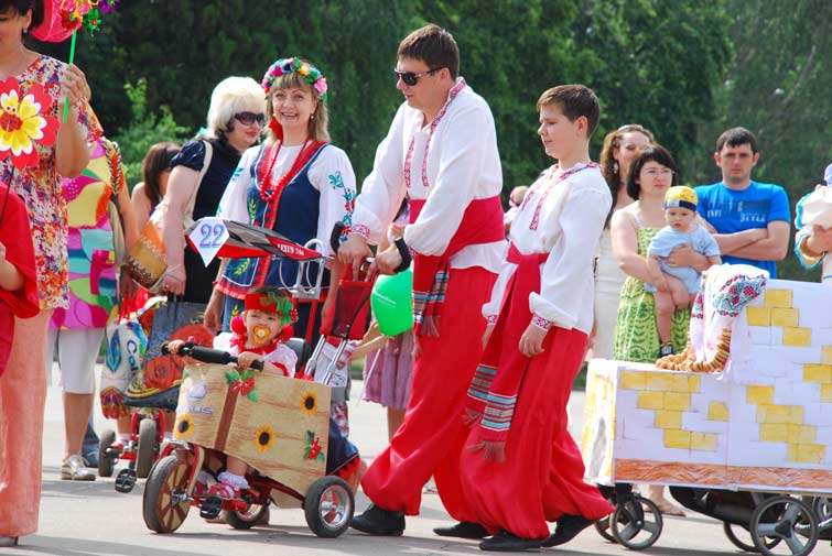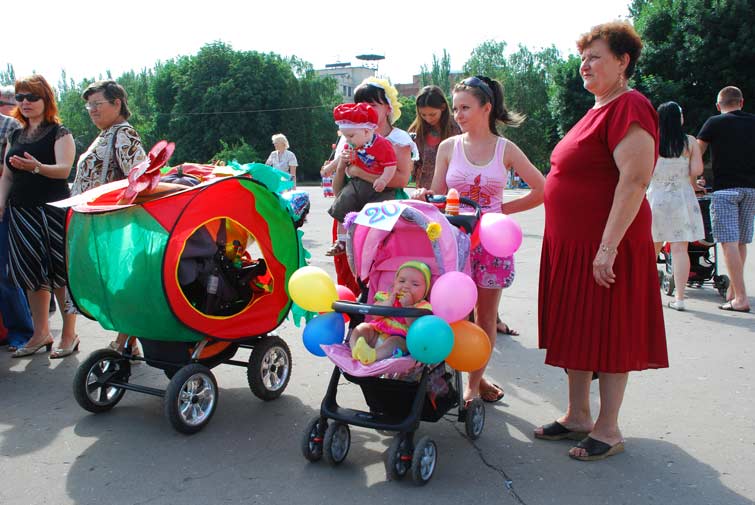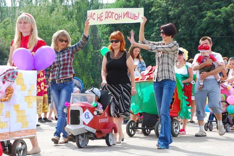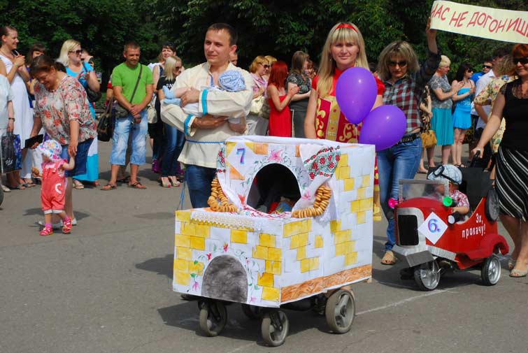 12 семей-участниц парада сконструировали из колясок настоящие шедевры. И все они были награждены заслуженными подарками в номинациях: «Королевская», «Капитан корабля», «Цветочная бабочка», «Цветочная принцесса», «Чудо-печка», « Эх, прокачу…», «Воздушные шары», «Божья коровка», «Щирі українцї», «Пупсик-цветочек», «Принц», «Солнечная». 13 Славянский городской голова Неля Штепа, под патронатом которой проходил чемпионат «ползунков», не только инициировала, организовывала, но и активно участвовала в соревнованиях, помогая крошкам на беговой дорожке.