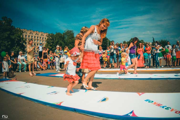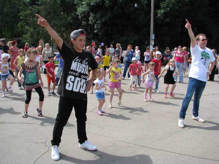 Здесь же, на площади, более сотни малышей и их родителей с удовольствием участвовали в развлекательной программе в стиле Зумба «Здоровая мама, здоровый ребенок, здоровая семья».