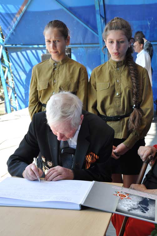 Право заполнить первую страницу рукописной истории поколений предоставили городскому голове Неле Штепе и легендарным современникам, ветеранам ВОВ Семену Ивановичу Усачеву, Людмиле Леонтьевне Соколовой и Ивану Ивановичу Фролову.