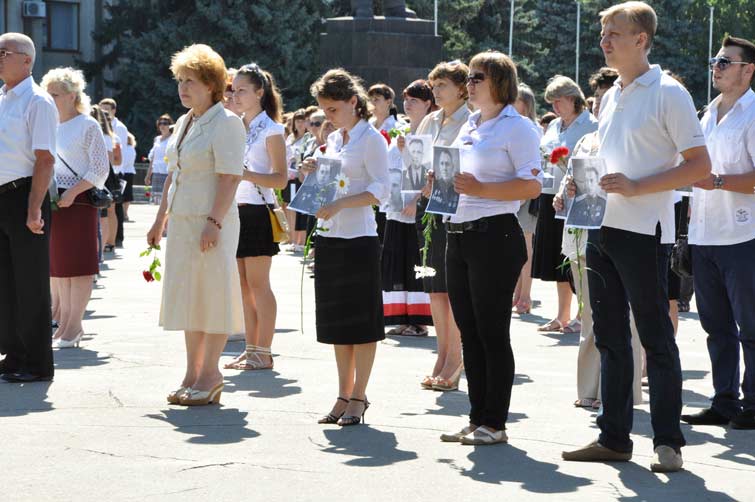 Открывая торжественное мероприятие, Неля Штепа поблагодарила всех, кто пришел в этот памятный день на площадь: «Спасибо вам, что пришли, что чувствуете эту боль». И подчеркнула: «Мы должны знать свою историю, чтить память о бессмертном подвиге героев, которые подарили нам мирное небо над головой. И мы должны помнить, что своим примером воспитываем детей и внуков».