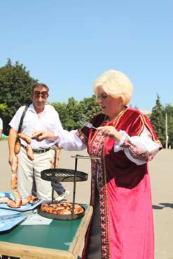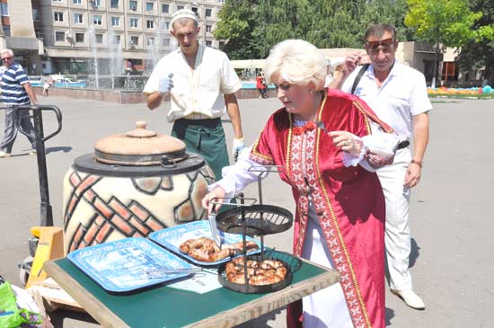 Обещанное для горожан угощение Неля Штепа организовывала лично. Собственноручно сделала заготовки домашних колбасок и куриных крылышек по своему фирменному рецепту (их готовили тут же, на площади, в тандыре, и раздавали всем желающим). В огромной палатке с надписью «Чаепитие с Нелей Штепой» славянцы и гости города пили чай с медом и вареньем, которые городской голова привезла из дому. А полтонны бубликов – от маленьких до огромных, предоставили предприятия города – «Славтрейд «Браво», ЧАО «Хлеб» и др.