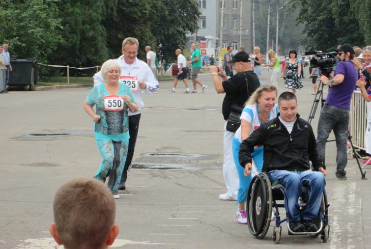 После того, как финишировал последний участник этого забега, Неля Штепа, Александр Самсонов и депутат городского совета Алексей Яковленко, восхищенные мужеством и силой воли участников, вручили им всем подарки.