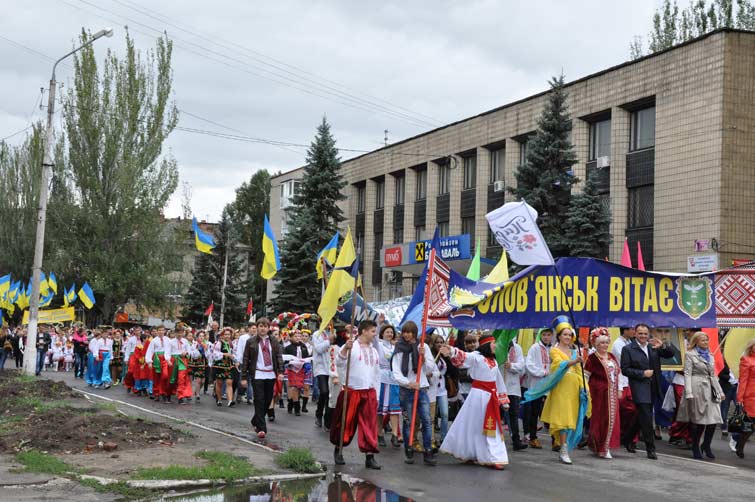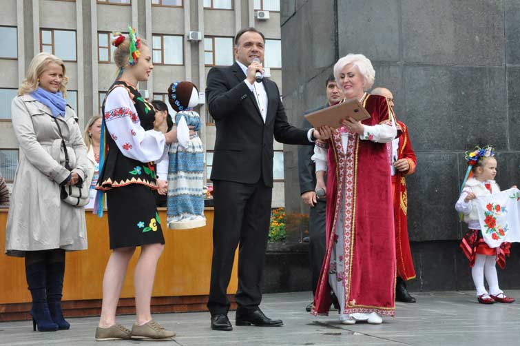 Игорь Добруцкий, приветсвуя славянцев, сказал, что наш город – невероятный! Что в Киеве на «Параде вишиванок» у него было ощущение, будто Славянск не кончается! И что ему кажется, будто Славянск – это центр Украины.
