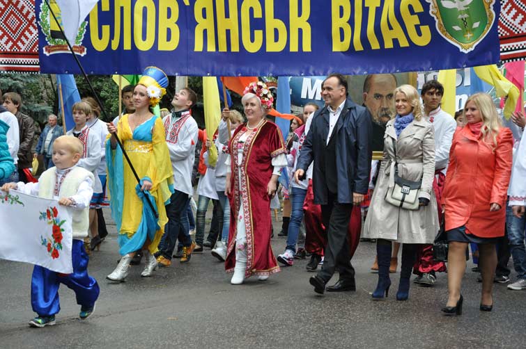 Особое место в праздничной программе занимал Парад вышиванок. В 12 часов улица Свободы и площадь Окт. Революции Славянска превратились на время в Киев 24-августа: многосотенная колонна торжественно шествовала за «Диво-птахом». Возглавляли шествие Славянский городской голова Неля Штепа и приехавшие в Славянск из Киева президент общественной организации «Столичні ініціативи» Игорь Добруцкий, председатель жюри Елена Добруцкая и член жюри, заслуженная артистка Украины Наталья Шелепницкая.